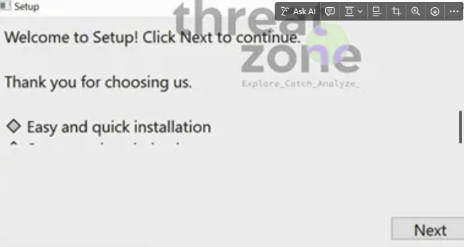2: Once executed, the malware displays a fake window to appear legitimate while decrypting and executing malicious code in the background.