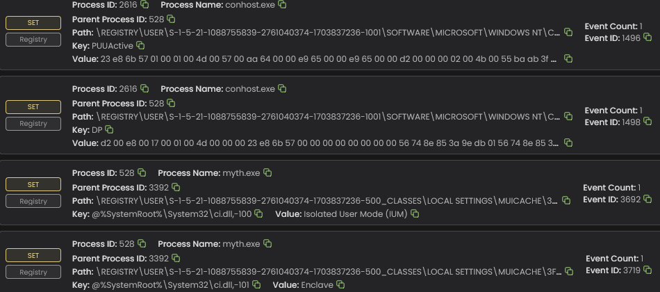 The malware also made registry modifications in the USER registry to establish persistence within the machine and set it as normal activity.