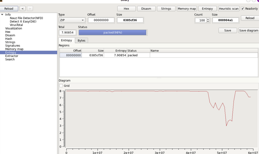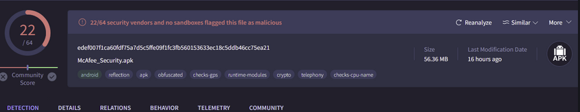 Check the Entropy and ninety eight percent of the APK file for MacAfee secuirty is packed.