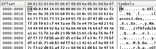 Check the Hex Values as well and as you can see from the image below, its mostly encrypted, but we can see a Dex file within the APK's memory.