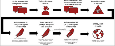 The more evasive version of Vultur spreads to victims through a hybrid attack that relies on SMS phishing and phone calls that trick the targets into installing a version of the malware that masquerades as the McAfee Security app